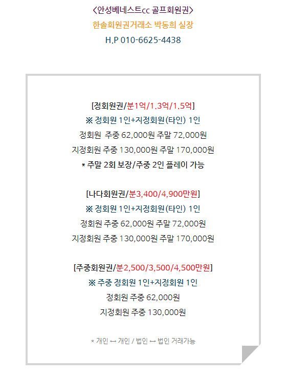 골프회원권/안성베네스트 안성베네스트cc회원권 매매 안내드립니다. 한솔회원권거래소 작성함 2022. 4. 14. 10:22 페이스북에 공유 카카오스토리에 공유 네이버에 공유 트위터에 공유 구글플러스에 공유 + 안녕하세요. 한솔회원권거래소 입니다. 오늘은 안성베네스트cc회원권에 대해서 알아보도록 하겠습니다. 매매상담 - 한솔회원권거래소 010.6625.4438 안성베네스트cc회원권은 주중회원권과 나다회원권, 일반회원권으로 구분되어 있습니다. 회원권의 종류에 따라서 시세와 혜택 등이 달라지기 때문에 더욱 궁금하신 부분은 한솔회원권으로 문의 주세요. ▼▼▼ 안성베네스트cc 이용요금 및 예약안내 안성베네스트cc 오시는 길 골프/콘도/휘트니스 회원권 한솔회원권거래소 빠른상담을 원하신다면 아래의 이미지를 클릭하여 주시기 바랍니다. ▼▼▼ 공유하기 게시글 관리 한솔회원권거래소 저작자표시 (새창열림) '골프회원권/안성베네스트' 다른 게시물 보기 더보기 2022.06.24 안성베네스트cc회원권 매매 안내드립니다. 2022.05.03 안성베네스트cc회원권 매매 안내드립니다. 2022.02.09 안성베네스트cc회원권 매매 안내드립니다. 2022.01.04 안성베네스트cc회원권 매매 안내드립니다.