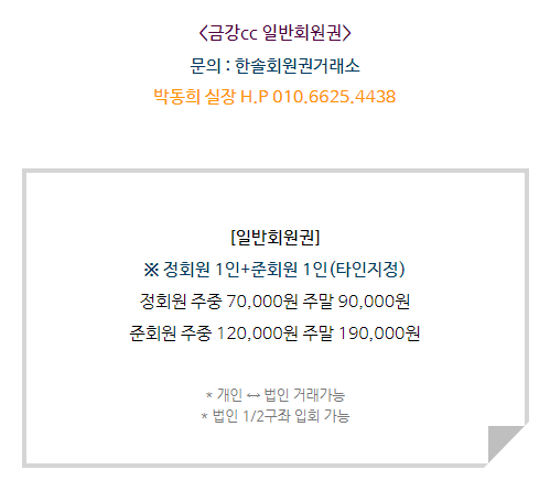 금강cc회원권은 일반회원권으로 정회원 1인과