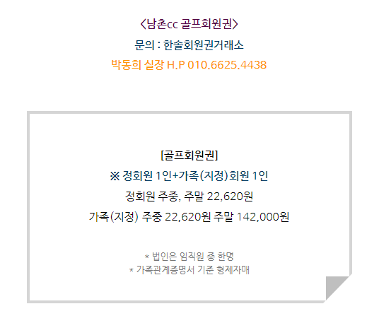 남촌cc회원권은 정회원 1인과 가족(지정)회원