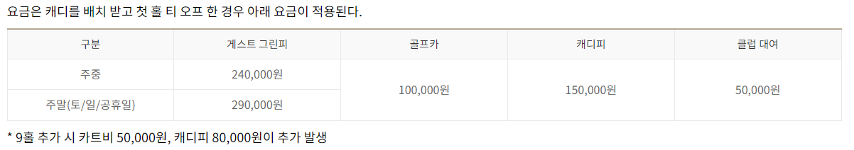 남촌cc이용요금 안내