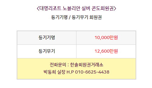 대명리조트 노블리안 실버 콘도회원권은 등기기명과