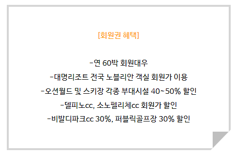 연 60박 회원대우를 받을 수 있고 대명리조트 전국 노블리안 실버