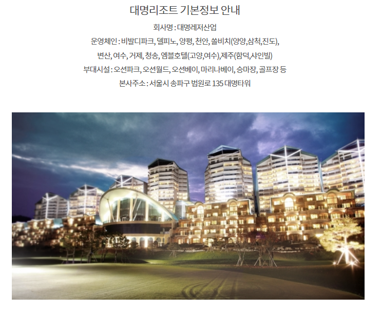 객실 회원가 이용이 가능합니다. 대명의 경우 전국에 체인을 두고