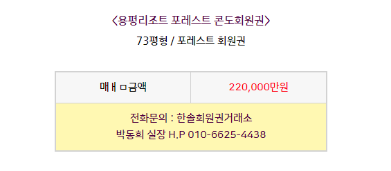 용평리조트포레스트회원권 매매 안내드립니다.