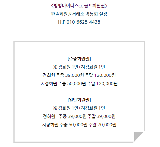 청평마이다스cc회원권은 주중회원권과