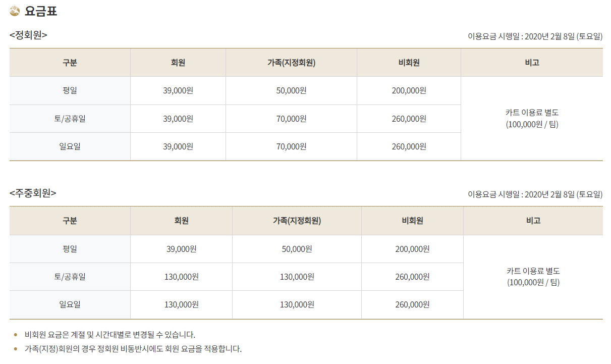 일반회원권으로 구분되어 있습니다. 회원권에 대해