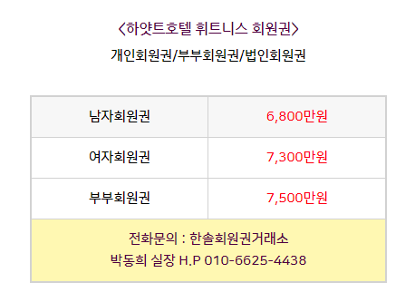 하얏트호텔회원권은 남자회원권과 여자회원권, 부부회원권,