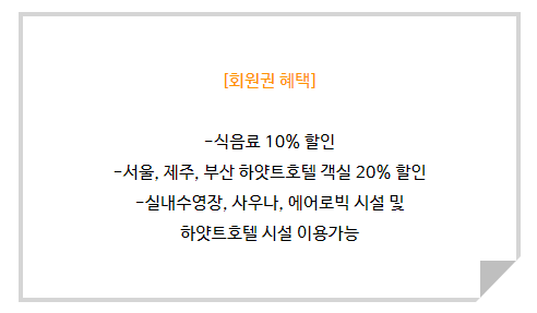 에어로빅 시설 및 하얏트 호텔 시설 이용가능 등이 있습니다. 회원권에