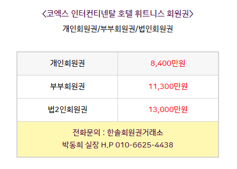 코엑스인터회원권은 개인회원권과 부부회원권,