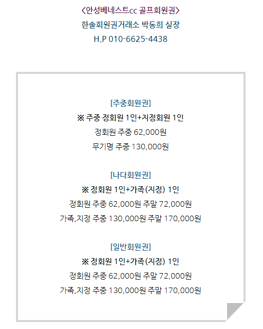 안성베네스트cc회원권은 주중회원권과 일반,
