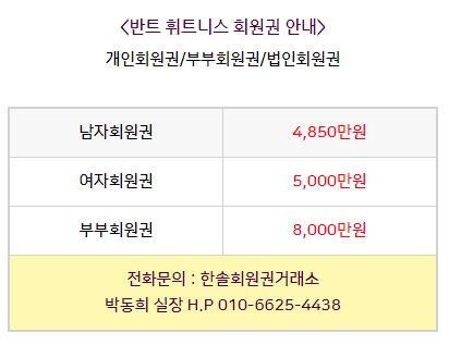 반트휘트니스회원권은 개인회원권과 부부회원권,