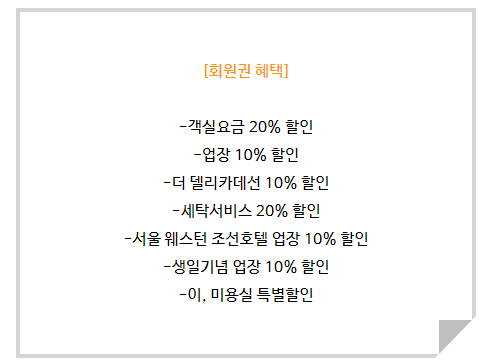 할인, 서울 웨스턴 조선호텔 업장 10% 할인, 생일기념 업장 10%