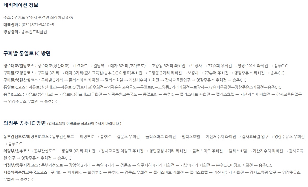 송추cc 위치 안내