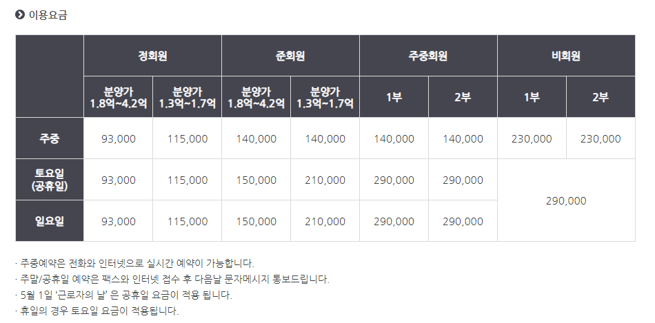 분양금액에 따라서 시세와 회원구성, 혜택이