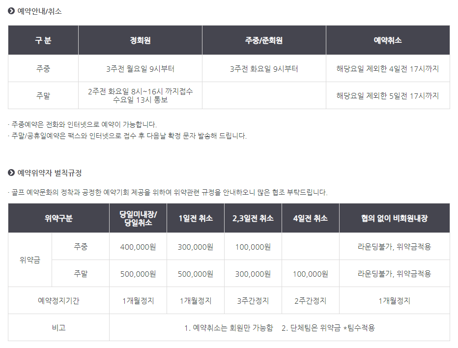 서원밸리cc 이용요금 및 예약 안내