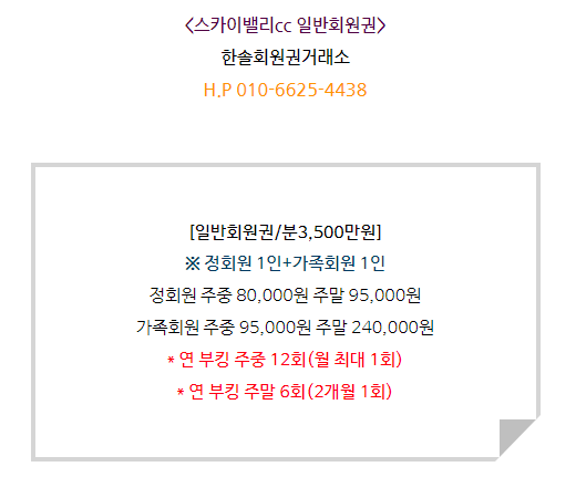 스카이밸리cc회원권은 일반회원권으로