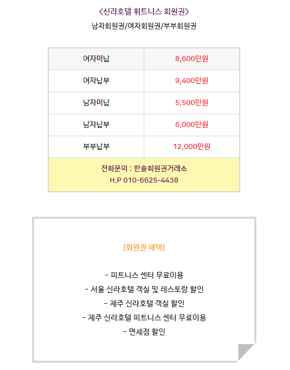 신라호텔휘트니스회원권 매매 안내드립니다.