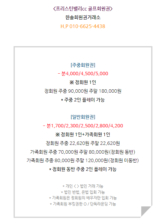 프리스틴밸리cc회원권은 주중회원권과