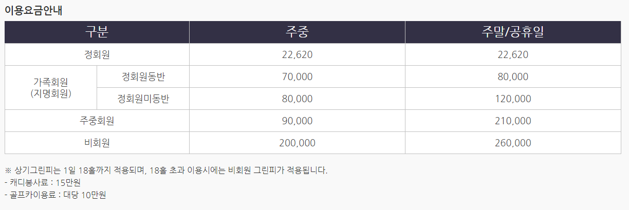 일반회원권으로 구분되어 있습니다. 회원권의