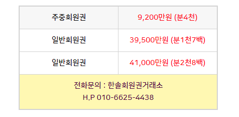 한솔회원권거래소 입니다.