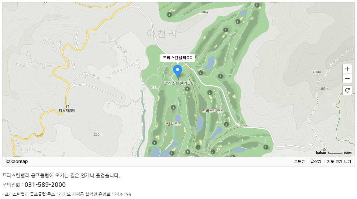 프리스틴밸리cc 이용요금 및 위치 안내