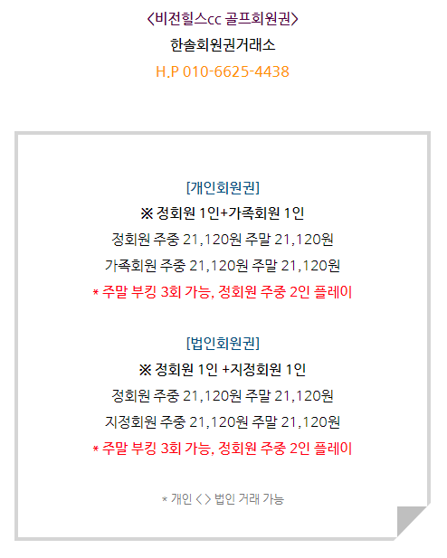 비전힐스cc회원권은 개인회원권과