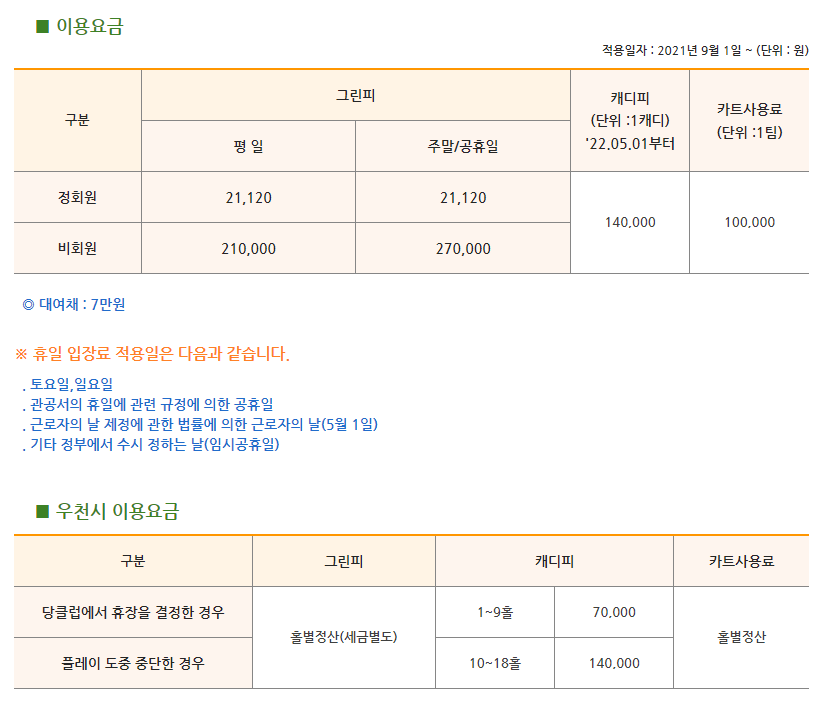 비전힐스cc 이용요금 안내