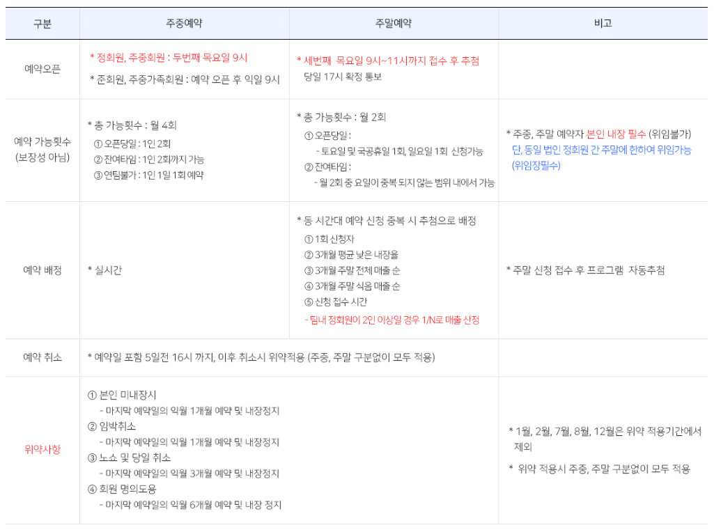 입회도 가능합니다. 주말 예약도 2회 가능하니 더욱