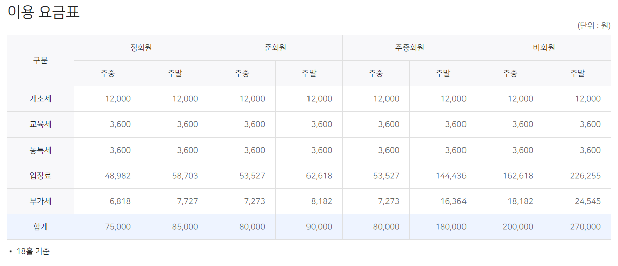 블루헤런cc 이용요금 및 예약 안내