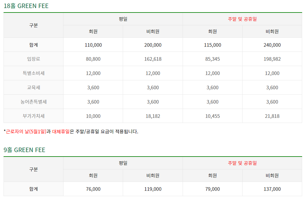 인천국제cc 이용요금 및 예약 안내