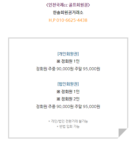 인천국제cc회원권은 개인회원권과