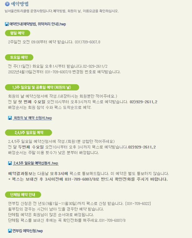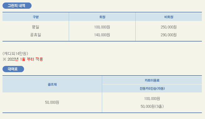 남서울cc 이용요금 및 예약 안내