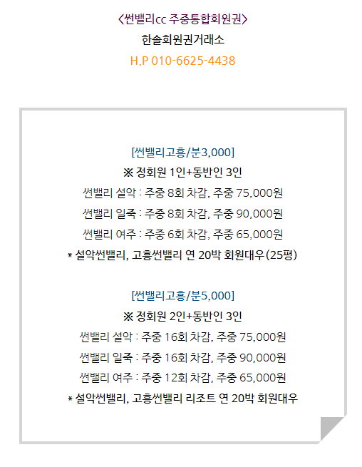 매매상담 - 한솔회원권거래소 010.6625.4438