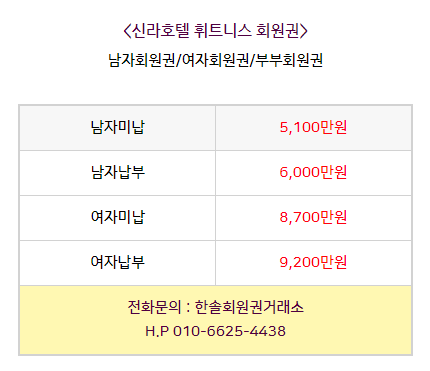 신라호텔휘트니스회원권 매매 안내드립니다.