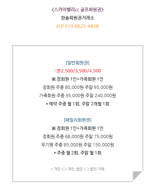 스카이밸리cc회원권 매매 안내드립니다.