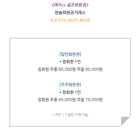 여주cc회원권은 일반회원권과