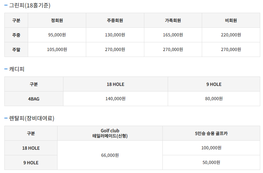 김포cc 이용요금 및 예약 안내