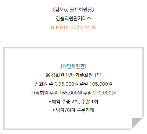 김포cc회원권은 개인회원권으로