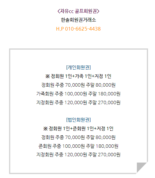 골프회원권/자유 자유cc회원권 매매 안내드립니다. 한솔회원권거래소 작성함 2022. 6. 17. 10:54 페이스북에 공유 카카오스토리에 공유 네이버에 공유 트위터에 공유 구글플러스에 공유 + 안녕하세요. 한솔회원권거래소 입니다. 오늘은 자유cc회원권에 대해서 알아보도록 하겠습니다. 매매상담 - 한솔회원권거래소 010.6625.4438 자유cc회원권은 개인회원권과 법인회원권으로 구분되어 있습니다. 회원권 관련 문의사항이 있다면 언제든지 한솔회원권거래소로 문의 부탁드립니다. ▼▼▼ 자유cc 이용요금 및 예약 안내 골프/콘도/휘트니스 회원권 한솔회원권거래소 빠른상담을 원하신다면 아래의 이미지를 클릭하여 주시기 바랍니다. ▼▼▼ 공유하기 게시글 관리 한솔회원권거래소 저작자표시 (새창열림) '골프회원권/자유' 다른 게시물 보기 더보기 2022.07.11 자유cc회원권 매매 안내드립니다. 2022.05.16 자유cc회원권 매매 안내드립니다. 2022.04.04 자유cc회원권 매매 안내드립니다. 2022.03.17 자유cc회원권 매매 안내드립니다.