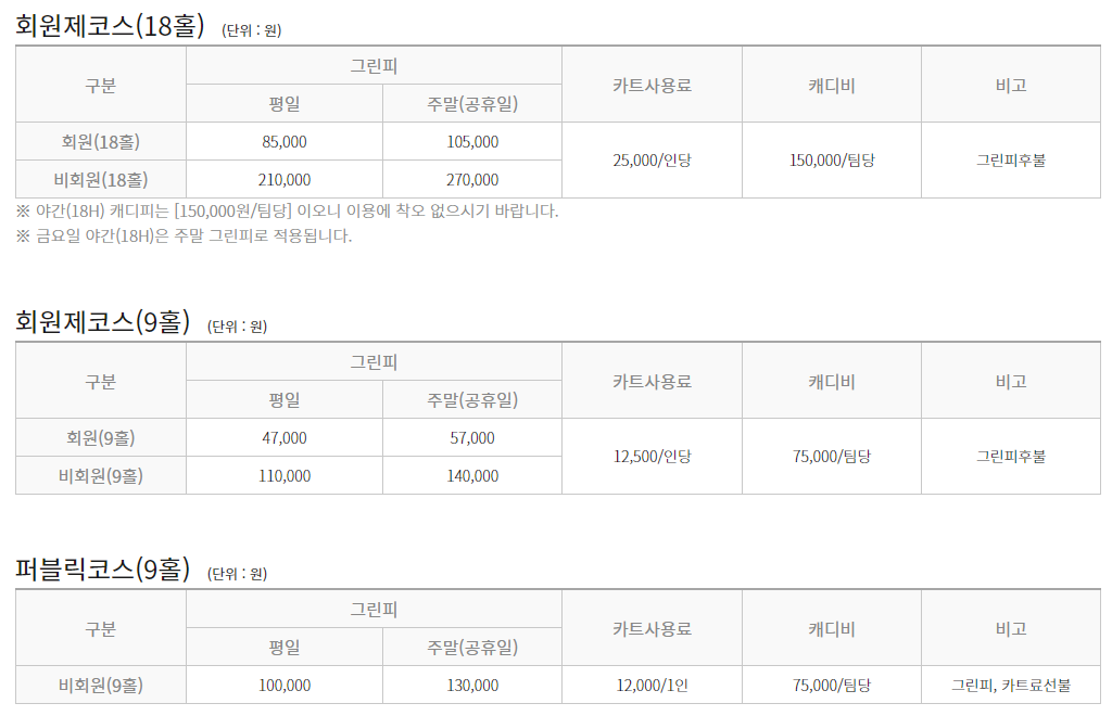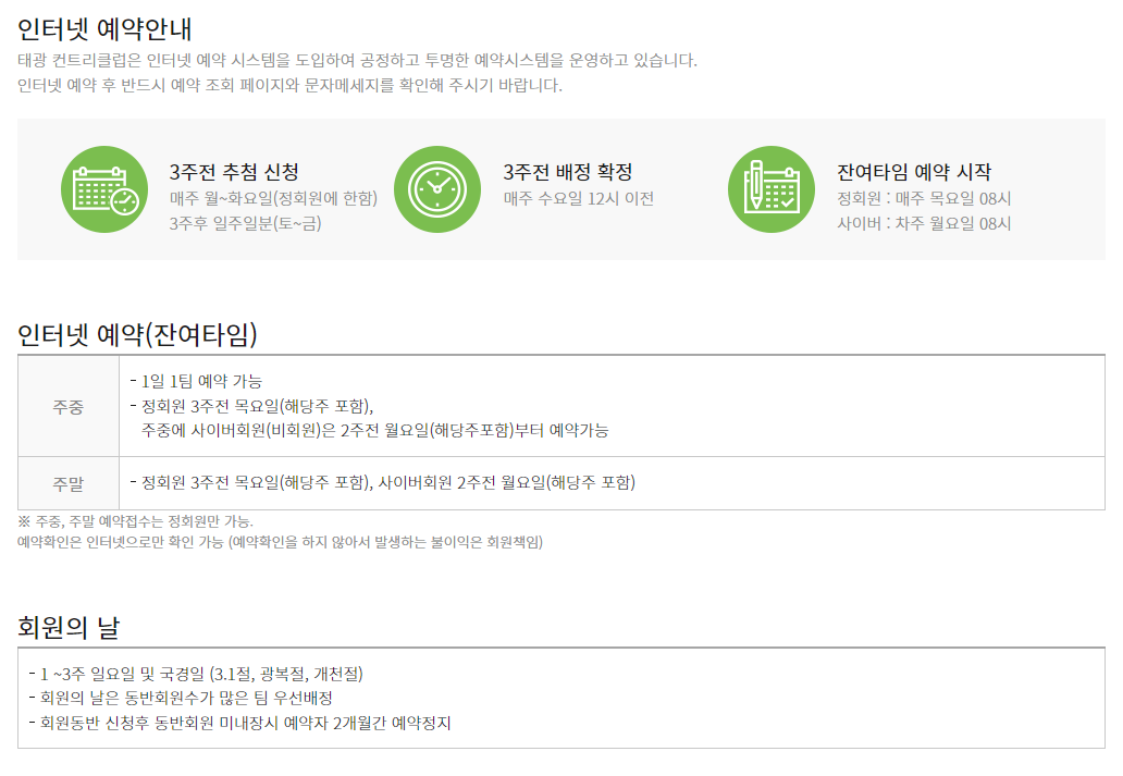태광cc 이용요금 및 예약 안내