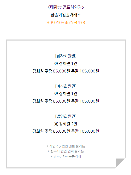 태광cc회원권은 남자와 여자회원권이