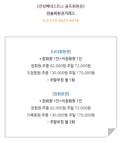 매매상담 - 한솔회원권거래소 010.6625.4438