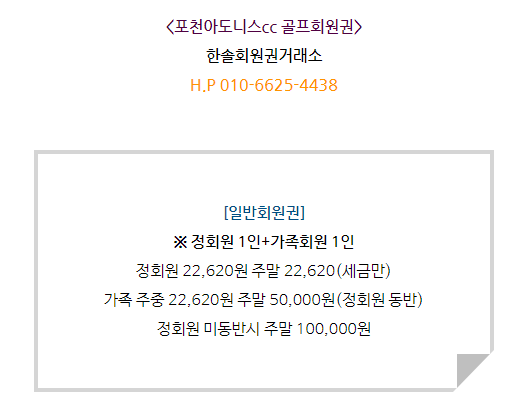 포천아도니스cc회원권은 일반회원권으로