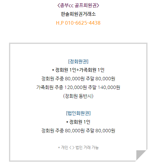 중부cc회원권은 일반회원권과