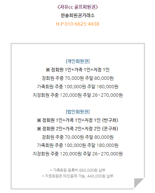 골프회원권/자유 자유cc회원권 매매 안내드립니다. 한솔회원권거래소 작성함 2022. 7. 11. 15:54 페이스북에 공유 카카오스토리에 공유 네이버에 공유 트위터에 공유 구글플러스에 공유 + 안녕하세요. 한솔회원권거래소 입니다. 오늘은 자유cc회원권에 대해서 알아보도록 하겠습니다. 매매상담 - 한솔회원권거래소 010.6625.4438 자유cc회원권은 개인회원권과 법인회원권으로 구분되어 있습니다. 회원권에 대해 더욱 궁금하신 부분이 있다면 한솔회원권으로 문의하여 주시기 바랍니다. ▼▼▼ 자유cc 이용요금 및 예약 안내 골프/콘도/휘트니스 회원권 한솔회원권거래소 빠른상담을 원하신다면 아래의 이미지를 클릭하여 주시기 바랍니다. ▼▼▼ 공유하기 게시글 관리 한솔회원권거래소 저작자표시 (새창열림) '골프회원권/자유' 다른 게시물 보기 더보기 2022.06.17 자유cc회원권 매매 안내드립니다. 2022.05.16 자유cc회원권 매매 안내드립니다. 2022.04.04 자유cc회원권 매매 안내드립니다. 2022.03.17 자유cc회원권 매매 안내드립니다.