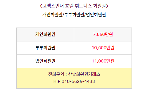 법인회원권으로 구분되어 있습니다. 회원권을 통한