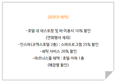 파르나스몰 혜택 등이 있습니다. 더욱 궁금하신 부분이