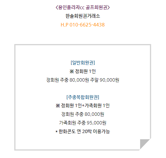 골프회원권/플라자-용인 용인플라자cc회원권 매매 안내드립니다. 한솔회원권거래소 작성함 2022. 7. 20. 16:19 페이스북에 공유 카카오스토리에 공유 네이버에 공유 트위터에 공유 구글플러스에 공유 + 안녕하세요. 한솔회원권거래소 입니다. 오늘은 용인플라자cc회원권에 대해서 알아보도록 하겠습니다. 매매상담 - 한솔회원권거래소 010.6625.4438 용인플라자cc회원권은 일반회원권과 복합회원권으로 구분되어 있습니다. 더욱 궁금하신 부분은 한솔회원권으로 문의하여 주시기 바랍니다. ▼▼▼ 용인플라자cc 이용요금 안내 용인플라자cc 위치 안내 골프/콘도/휘트니스 회원권 한솔회원권거래소 빠른상담을 원하신다면 아래의 이미지를 클릭하여 주시기 바랍니다. ▼▼▼ 공유하기 게시글 관리 한솔회원권거래소 저작자표시 (새창열림) '골프회원권/플라자-용인' 다른 게시물 보기 더보기 2022.08.24 플라자cc회원권 매매 안내드립니다. 2022.05.02 용인플라자cc회원권 매매 안내드립니다. 2022.04.29 용인플라자cc회원권 매매 안내 2021.12.13 용인플라자cc회원권 매매안내