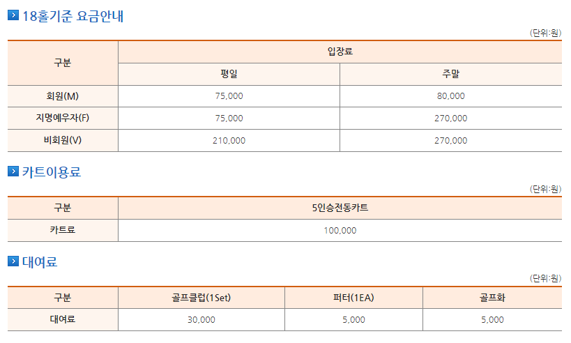 기흥cc 이용요금 및 예약 안내