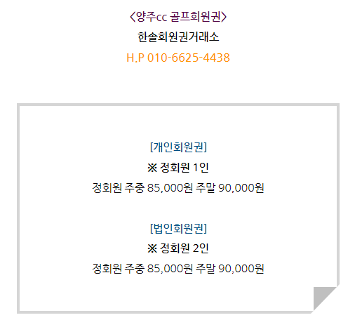 양주cc회원권은 개인회원권과
